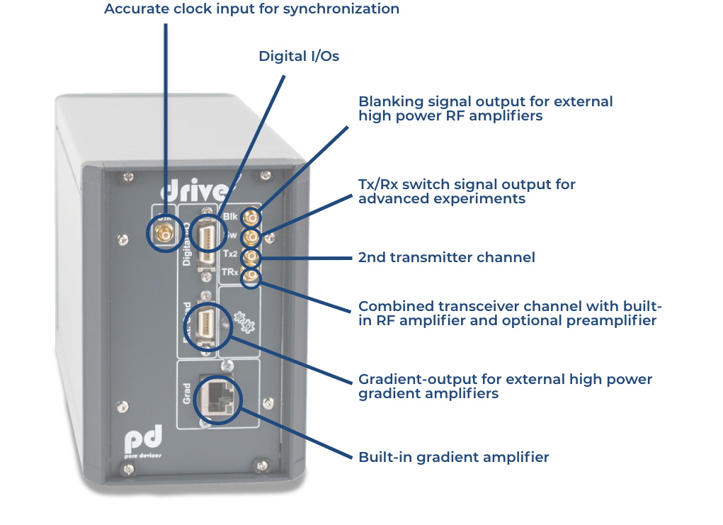 State of the art electonics paired with a high performance permanent magnet allows you to develop MR sequences and hardware directly at your workplace.